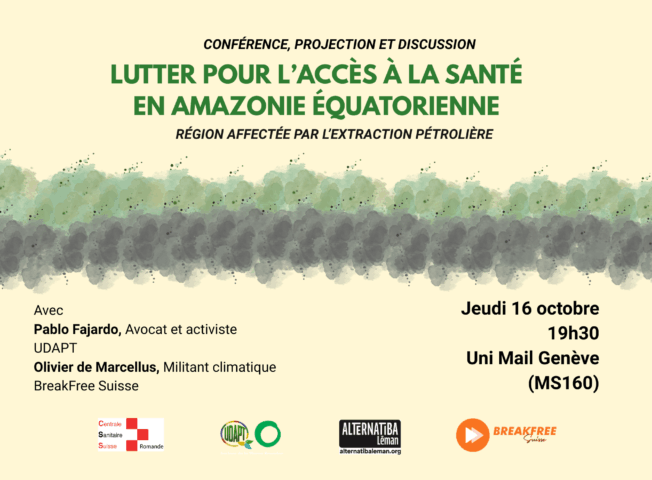Jeudi 16 octobre à 19h30 – Uni Mail (MS160) À l’occasion de la venue de Pablo Fajardo, avocat et activiste de la UDAPT, la CSSR organise une conférence sur le combat des populations impactées par l’extraction pétrolière. Dans un contexte de fragilisation de la coopération au développement, la solidarité avec l’Amérique Latine doit être réaffirmée […]